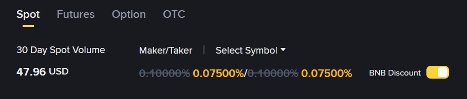 Aylık işlem hacminiz ise 1 milyon USD üzerinde ve hesabınızda 25 BNB tutuyorsanız ise oran %0.09’a düşüyor. Ancak %0.1 olan komisyon oranını işlem hacmine gerek duymadan düşürmek de mümkün.